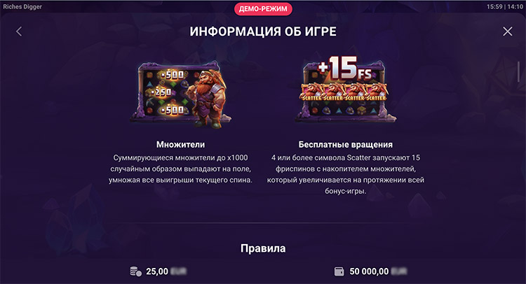 Слот переносит игроков в подземную шахту. В ней орудует гном, который охраняет легендарную жилу со священными камнями. Считается, что они способны исполнять желания. Подробное описание функций и официальная демоверсия слота Riches Digger доступны на странице.