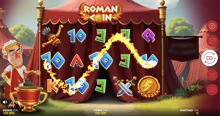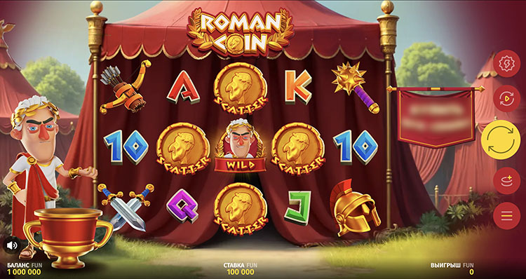Слот посвящен древнеримскому правителю-завоевателю Гаю Юлию Цезарю. Действие разворачивается посреди лагеря полководца. Символы выпадают на фоне шатра. Главная особенность игрового автомата — функция сбора. Она срабатывает в базовом режиме и во время бонусной игры. Подробное описание опций и характеристик слота Roman Coin размещено на странице.