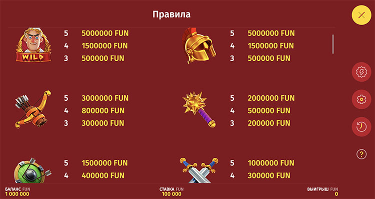 - Цезарь. Это одновременно вайлд, множитель и символ сбора. Он дополняет другие комбинации, формирует собственные и начисляет мгновенные выплаты. Возможные значения множителей — от х1 до х15.