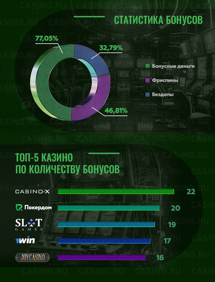 Самые популярные бонусы онлайн-казино в инфографике
