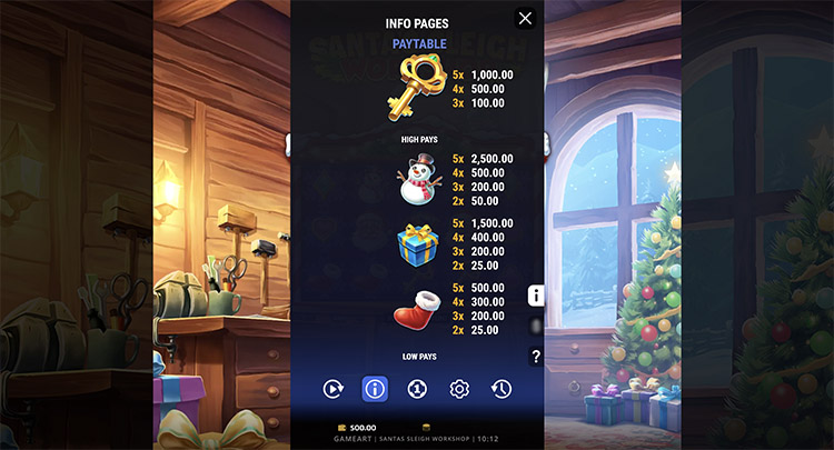 Санта выполняет функцию вайлда и появляется на 2-м, 3-м и 4-м барабанах. Также провайдер добавил несколько скаттеров: символ ключа оплачивается и запускает мини-игру, а изображение саней активирует фриспины.