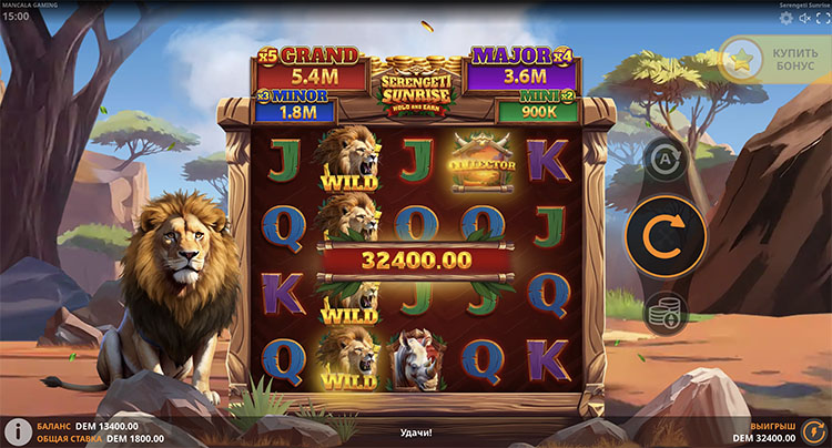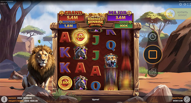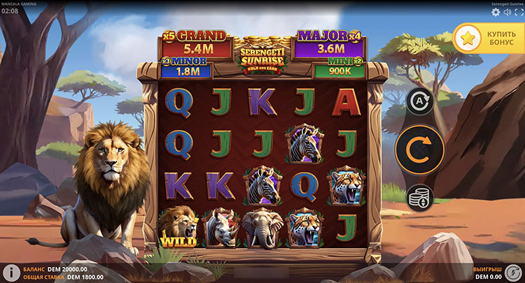 Слот вдохновлен дикой природой африканской саванны. Пользователи оказываются среди скал и деревьев. Вращения сопровождаются музыкой с этническими мотивами. Редакция Casino.ru подготовила подробный обзор функций и характеристик слота Serengeti Sunrise. Игроки могут запустить его в деморежиме.