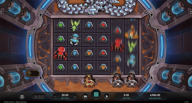 Действие разворачивается на арене. С одной стороны видно спящую змею, с другой — нападают персонажи, собирающиеся сразиться с ней. Они появляются при каждом вращении. Если на выбранном барабане выпадет вайлд, то дикий символ получит повышенный множитель. Когда проснется змея, она нападет на персонажей. Если победит один из них, его изображение расширится на весь барабан и получит множитель в диапазоне от х2 до х1000.