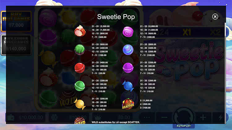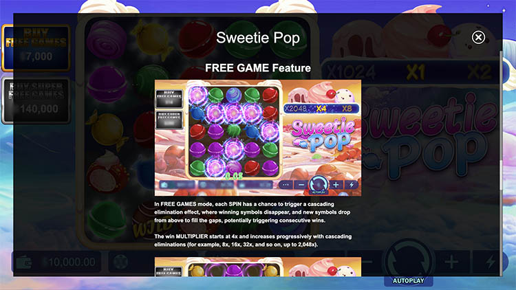 Провайдер выпустил слот на тематику сладостей. В качестве символов используются леденцы и шоколадные конфеты. Барабаны располагаются на фоне облаков из сахарной ваты и гор мороженого. Официальная демоверсия слота Sweetie Pop находится на странице с описанием технических характеристик и бонусов.