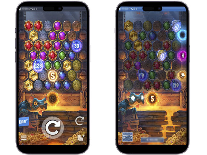 Клетки в игровом автомате Ryze 2 расположены в шахматном порядке, что создает макет сетки 6-5-6-5-6-5-6. Выплаты начисляются с помощью кластерной механики: должно выпасть не менее 5 одинаковых символов, соприкасающихся по горизонтали или вертикали.