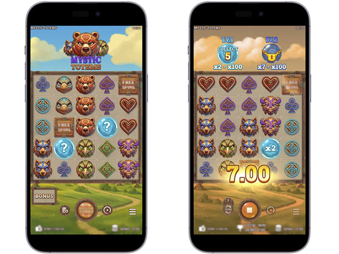 Mystic Totems — это высоковолатильный игровой автомат, посвященный животным и магии. Деревянные резные маски олицетворяют духов природы. Действие разворачивается на фоне природных пейзажей. В основе слота лежит механика Pay Anywhere: выигрышные комбинации формируются из 6 и более символов, расположенных в любых позициях на поле. После начисления выплаты запускается каскадное вращение.