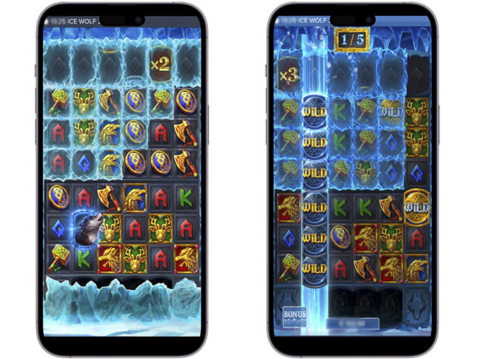 В Ice Wolf 2 используется динамическая сетка. При выпадении комбинаций расширяется активная область игрового поля и запускается повторное вращение.