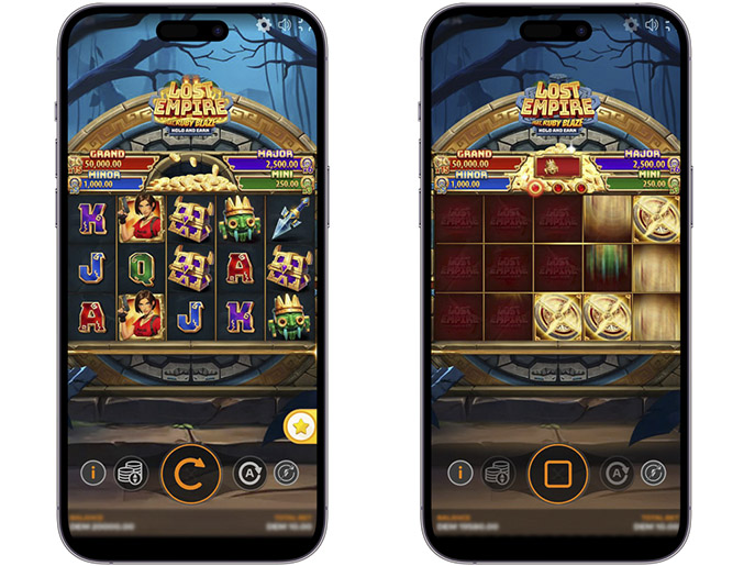 - Lock’n Gold — раунд с механикой Hold and Win. Он начинается при выпадении 6 и более монет. На старте выдаются 3 вращения, которые продлеваются с появлением каждого нового символа. Номиналы монет подсчитываются в конце бонуса. Если заполнены все клетки на поле, присуждается выигрыш в размере х500.