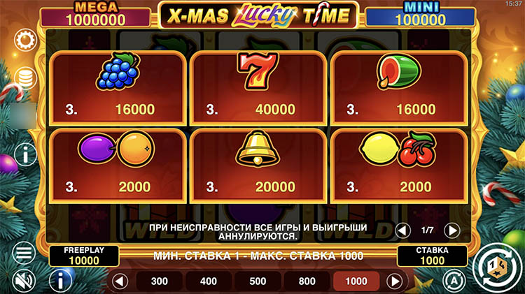 Это рождественский слот провайдера, выполненный в классическом стиле. Пользователей ждут фруктовые символы, фиксированные линии выплат и джекпоты в бонусном раунде. Официальная демоверсия слота Xmas Lucky Time Hold and Win доступна на странице вместе с описанием технических характеристик и функций.